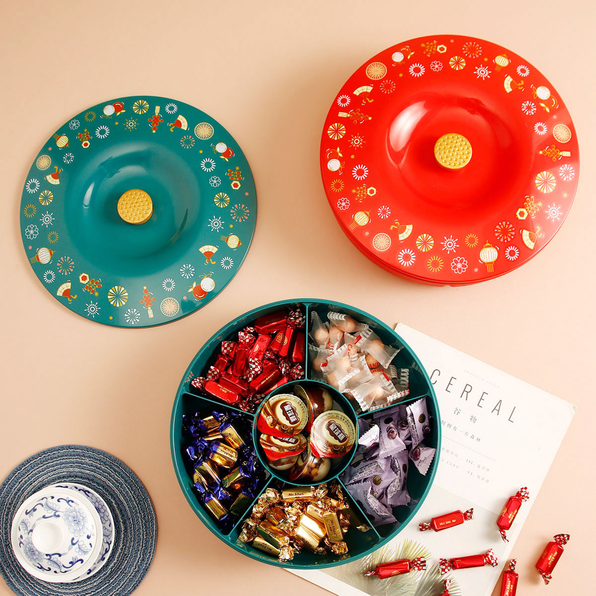 印花糖果盒小號(hào)/大號(hào)(紅蓋紅底 紅蓋黑底 綠蓋綠底)