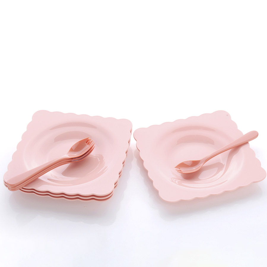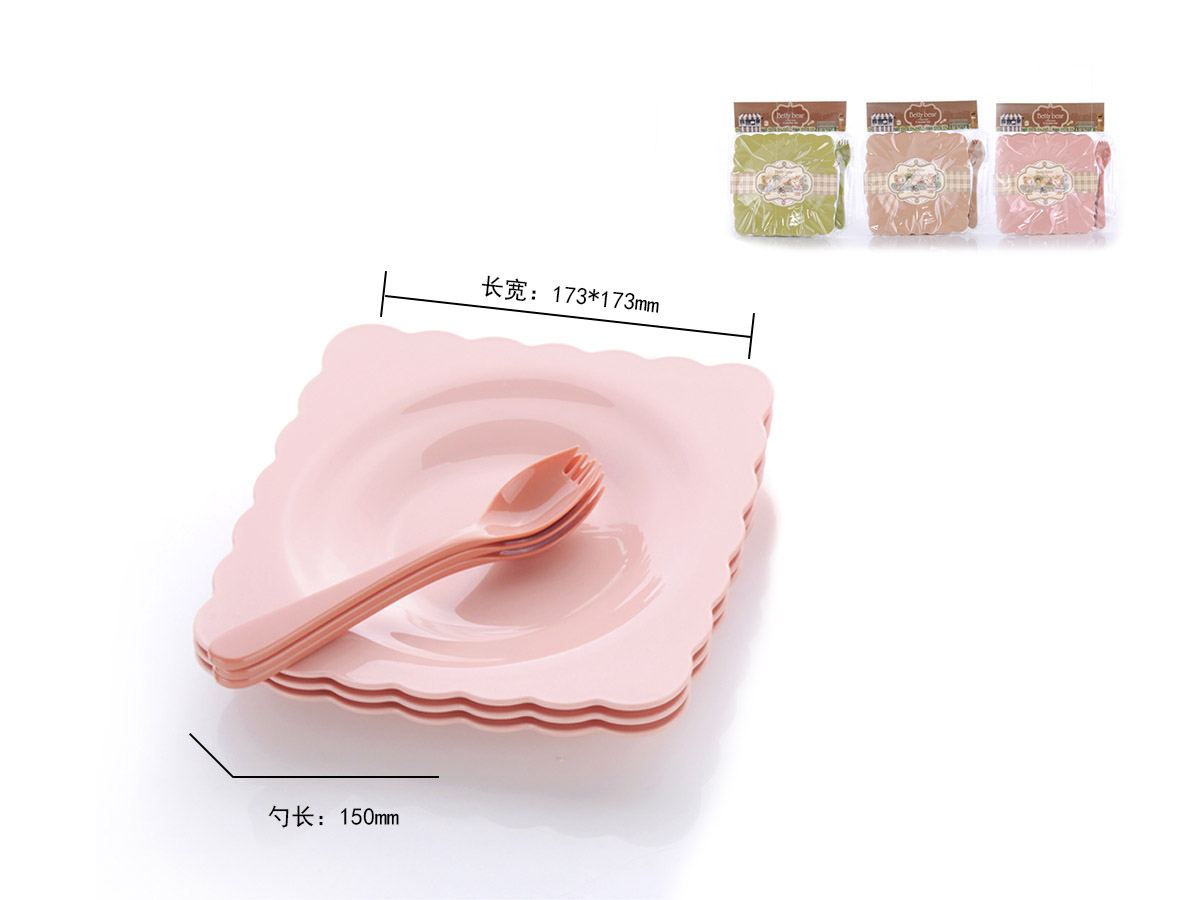 得力熊歐式中號花邊正方餐盤(4pcs)( 配4pcs叉匙)
