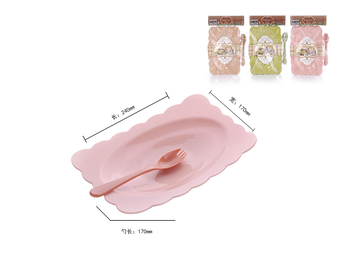 得力熊歐式大號(hào)花邊長方餐盤(4pcs)( 配4pcs叉匙)