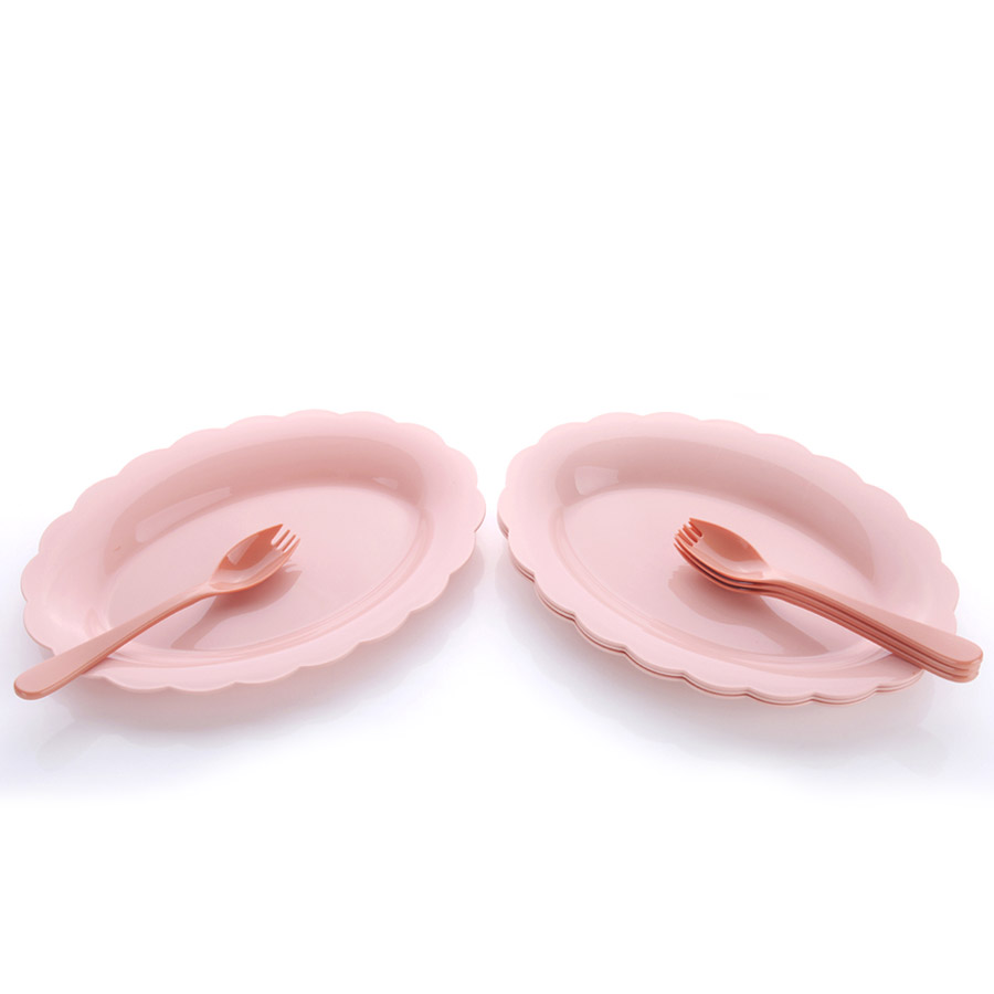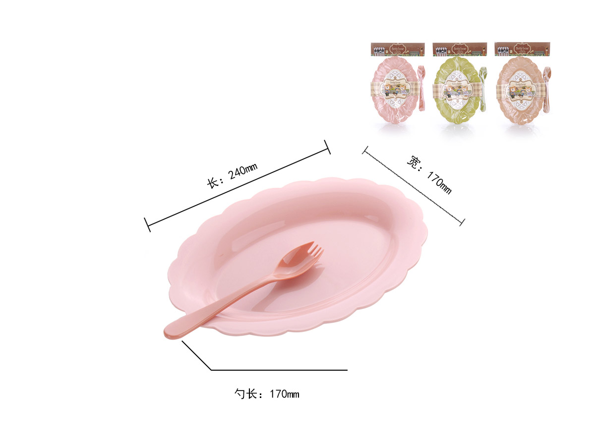 得力熊歐式大號花邊橢圓餐盤(4pcs)( 配4pcs叉匙)