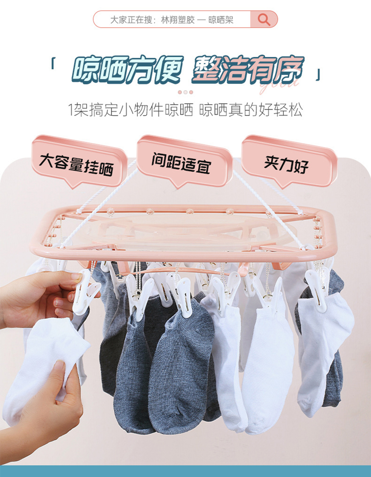 亮彩(掛桿)長方形24夾晾衣架 2023年新色