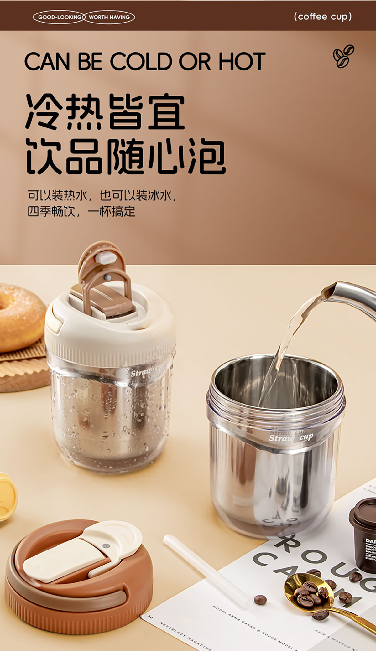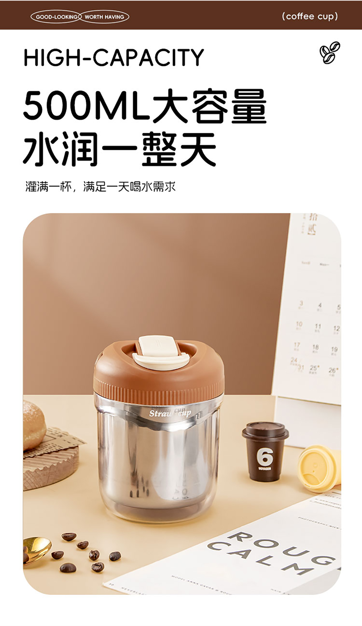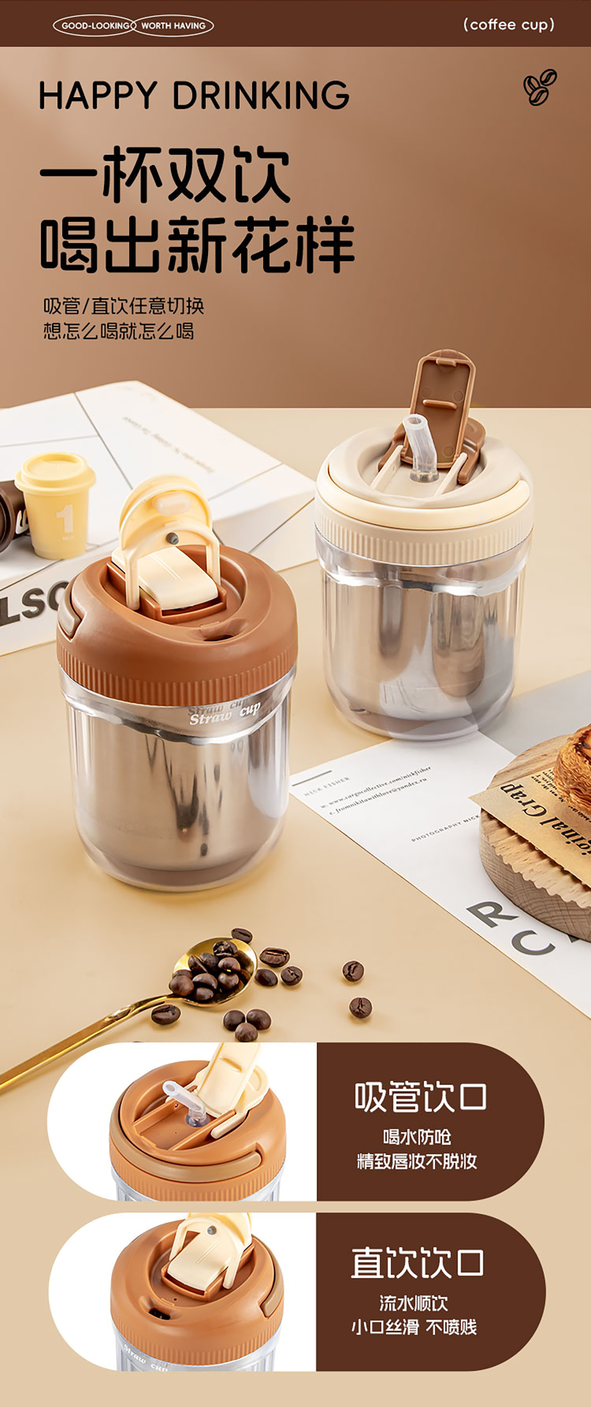 便攜吸管杯塑料款500ml/不銹鋼款480ml