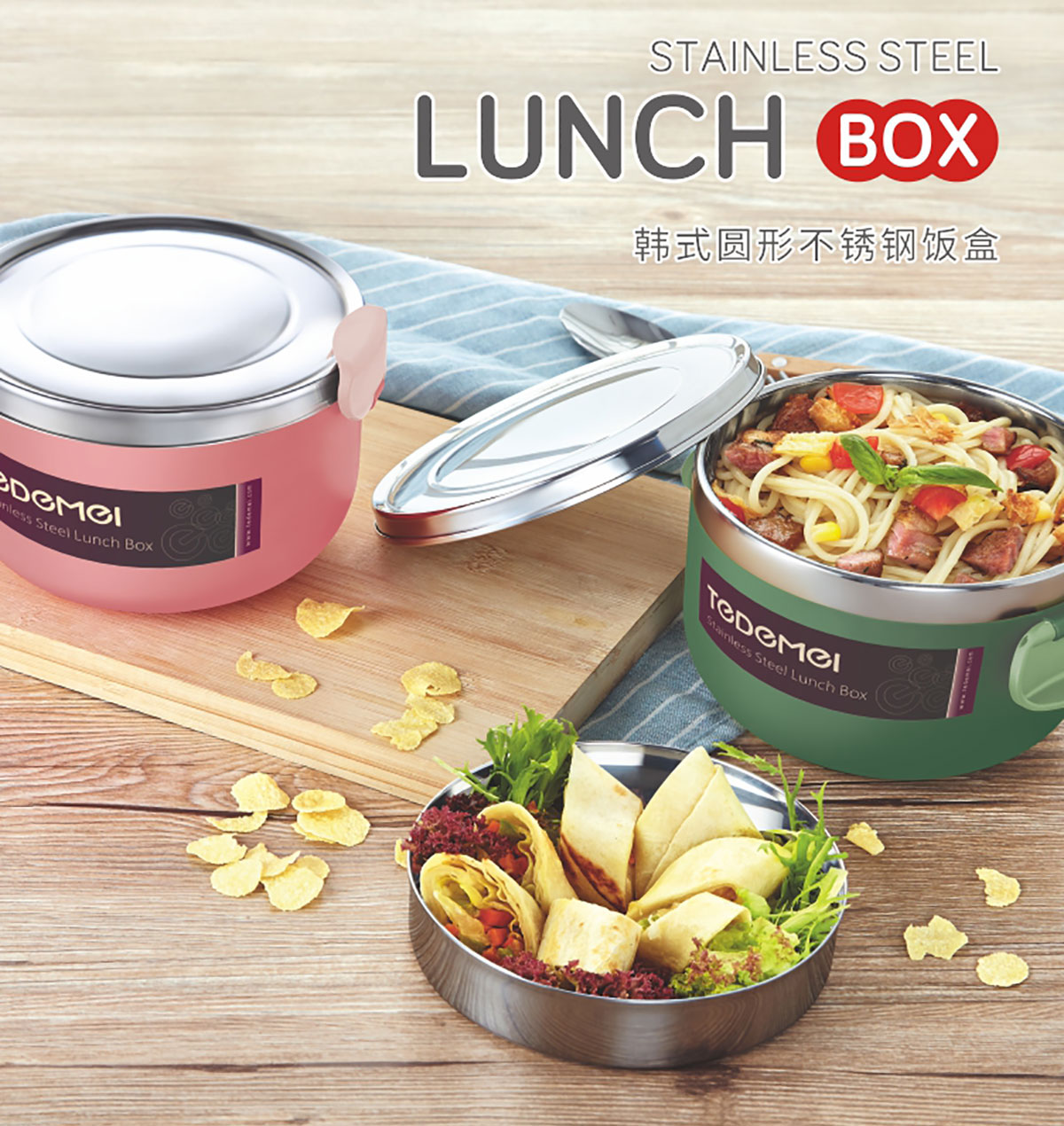 韓式圓形不銹鋼飯盒