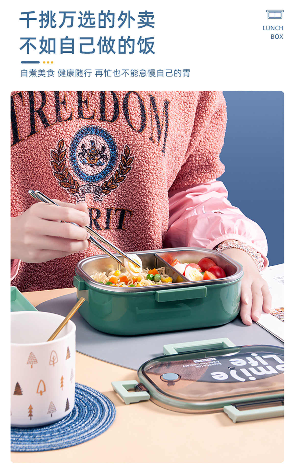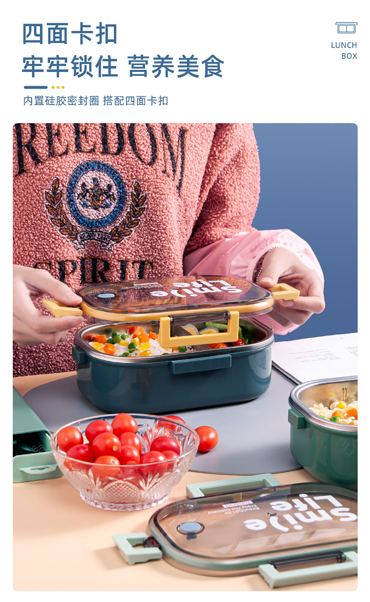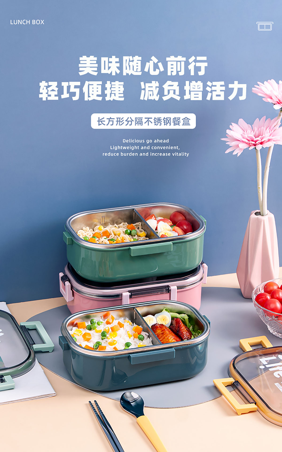 長方形分隔不銹鋼保溫飯盒(2020款新色)