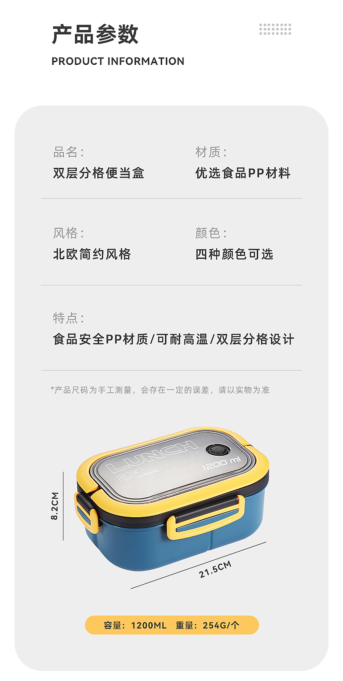 莫蘭迪橢圓飯盒1200ml