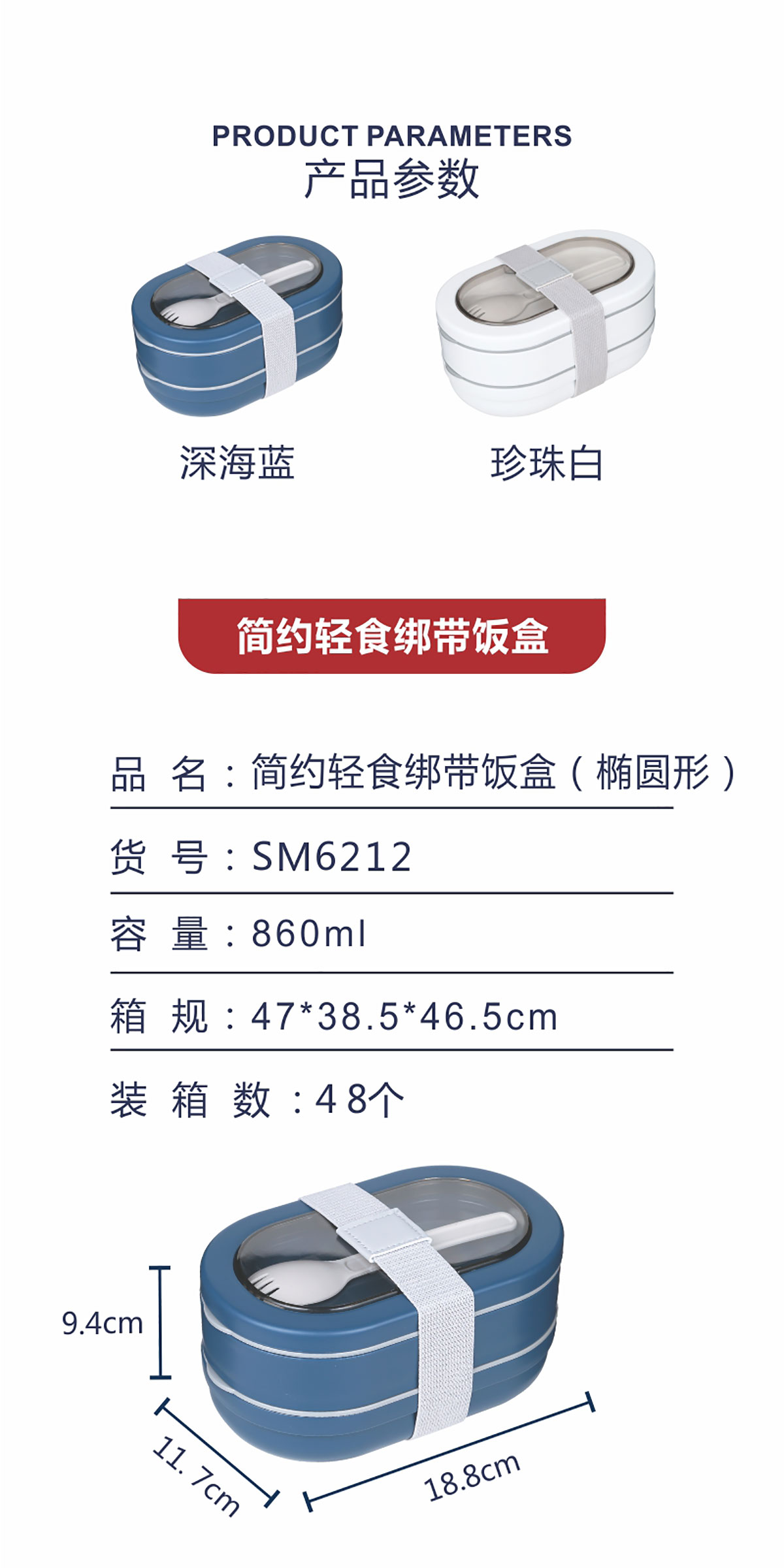 簡(jiǎn)約輕食綁帶飯盒 (橢圓形)860ml 22年新色