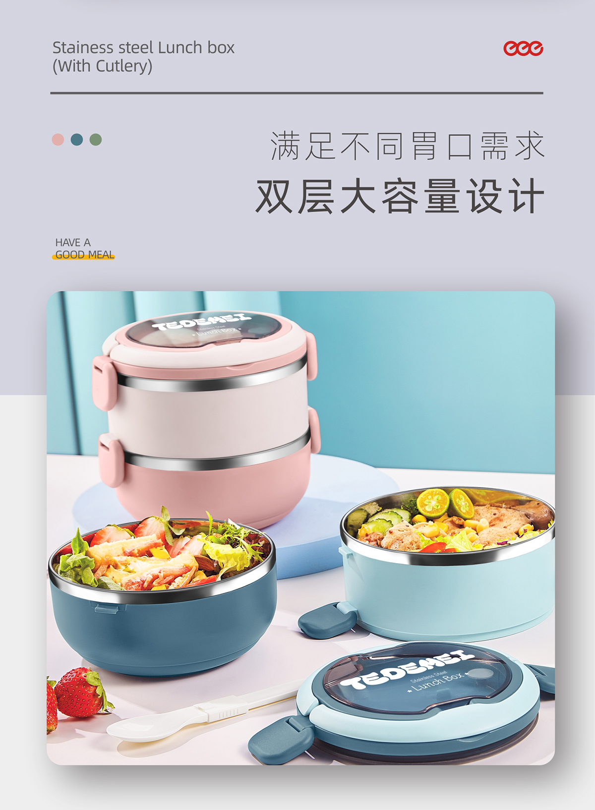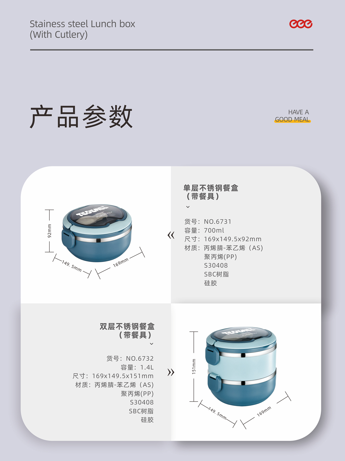 單層700ml/雙層1.4L不銹鋼餐盒