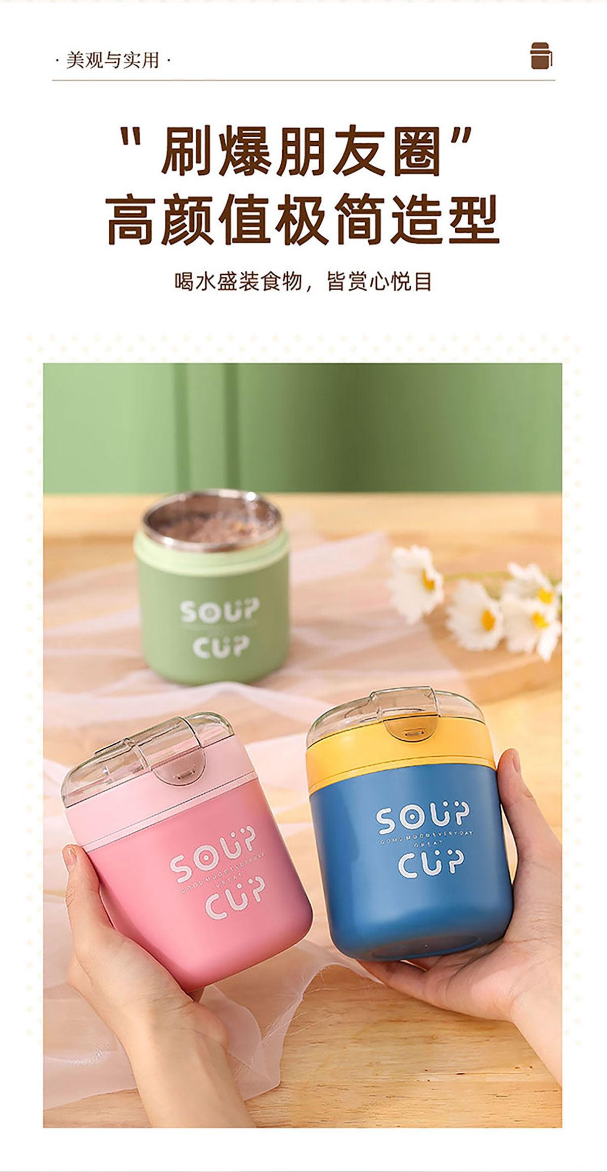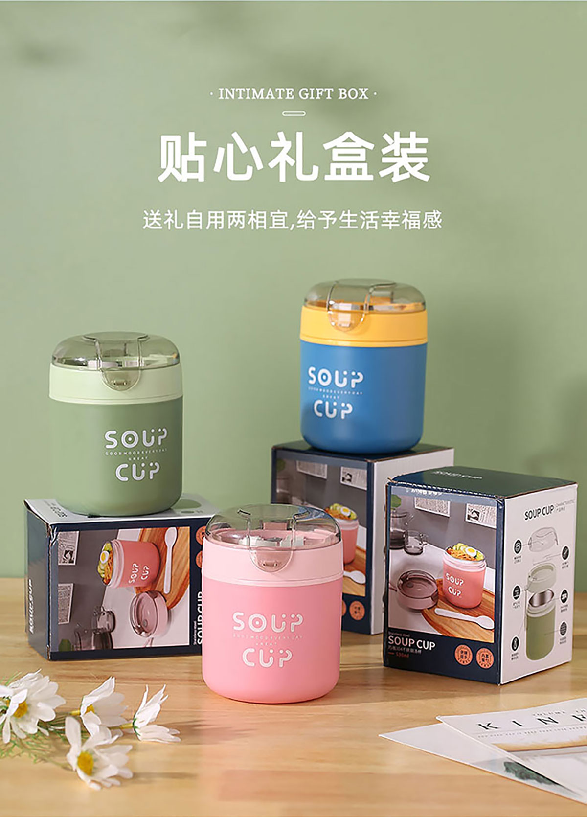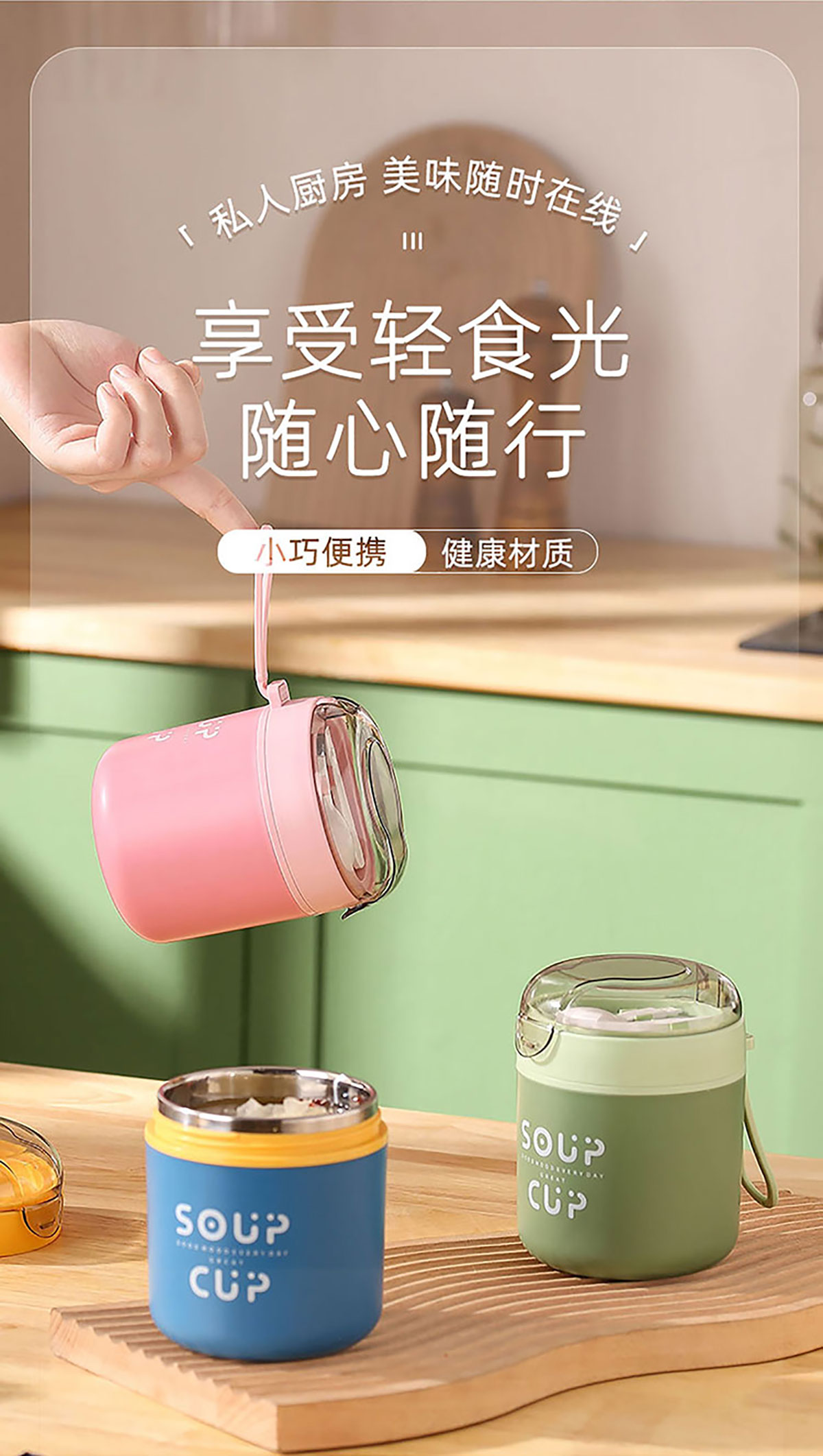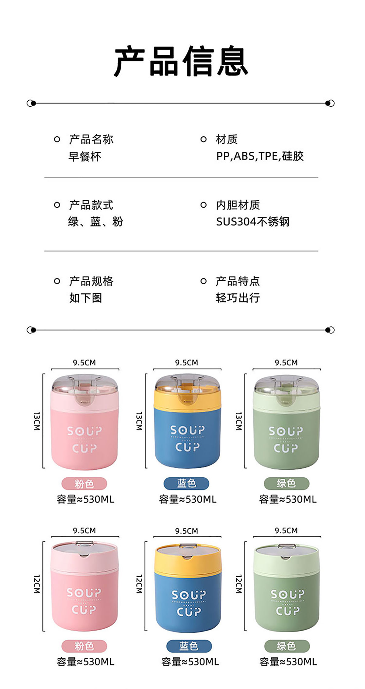 巧雅304不銹鋼湯杯530ml(高/平) 綠色/藍色/粉色