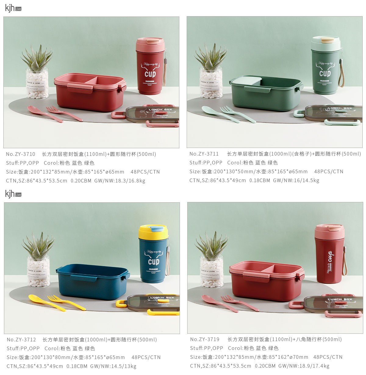 長方雙層/單層密封飯盒+圓形/八角隨行杯