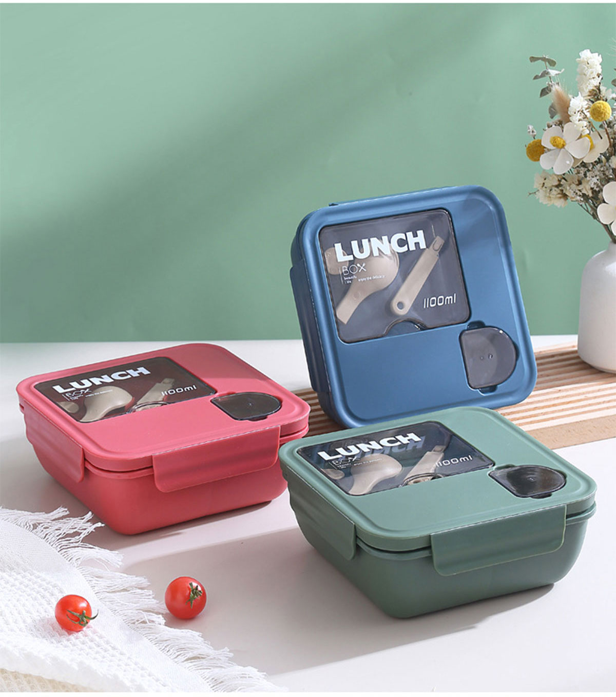 正方形醬料盒三格飯盒1100ml