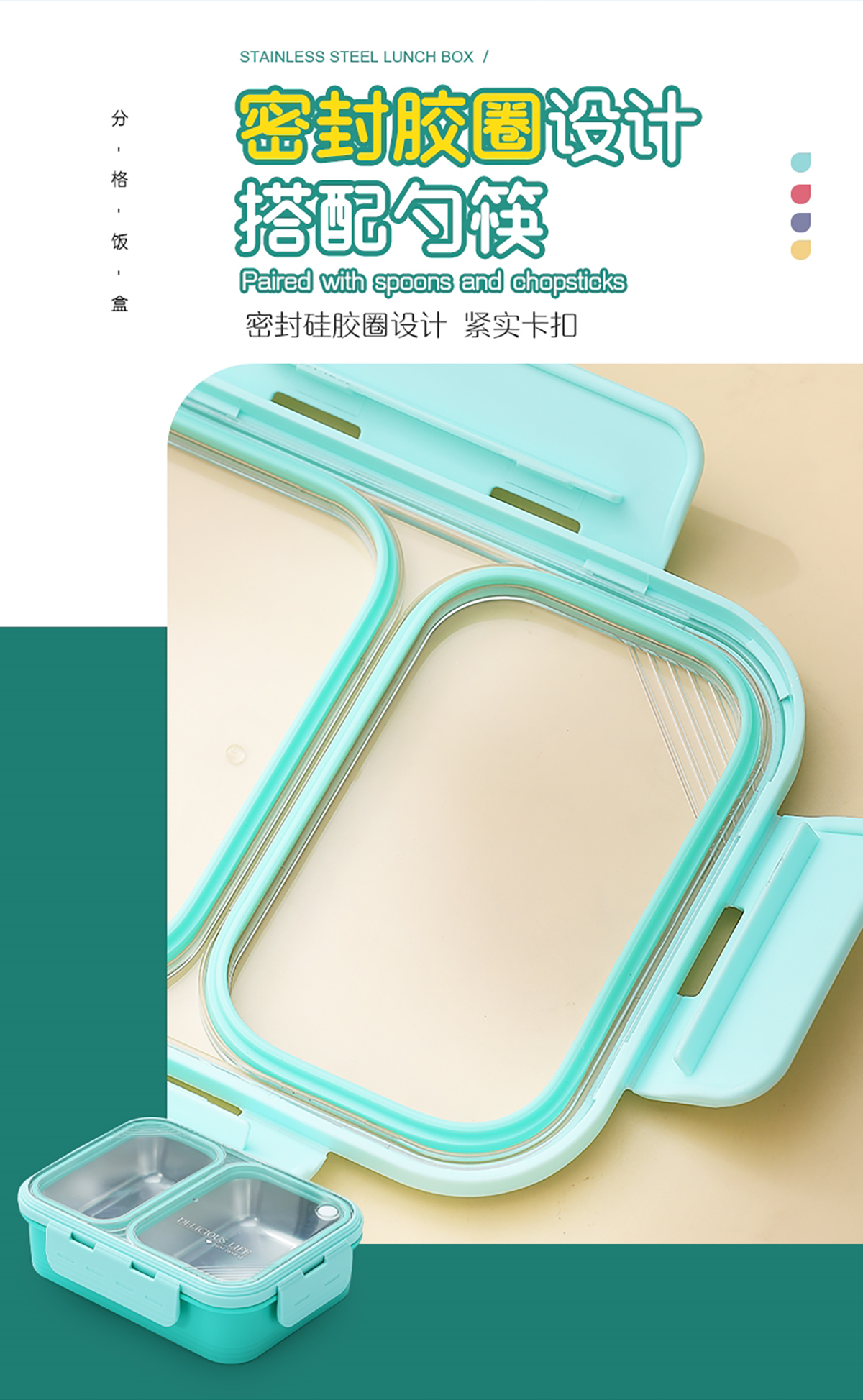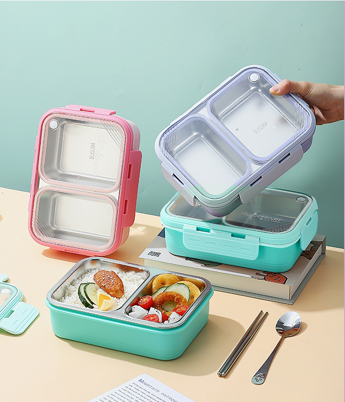 2格不串味不銹鋼餐盒700ml
