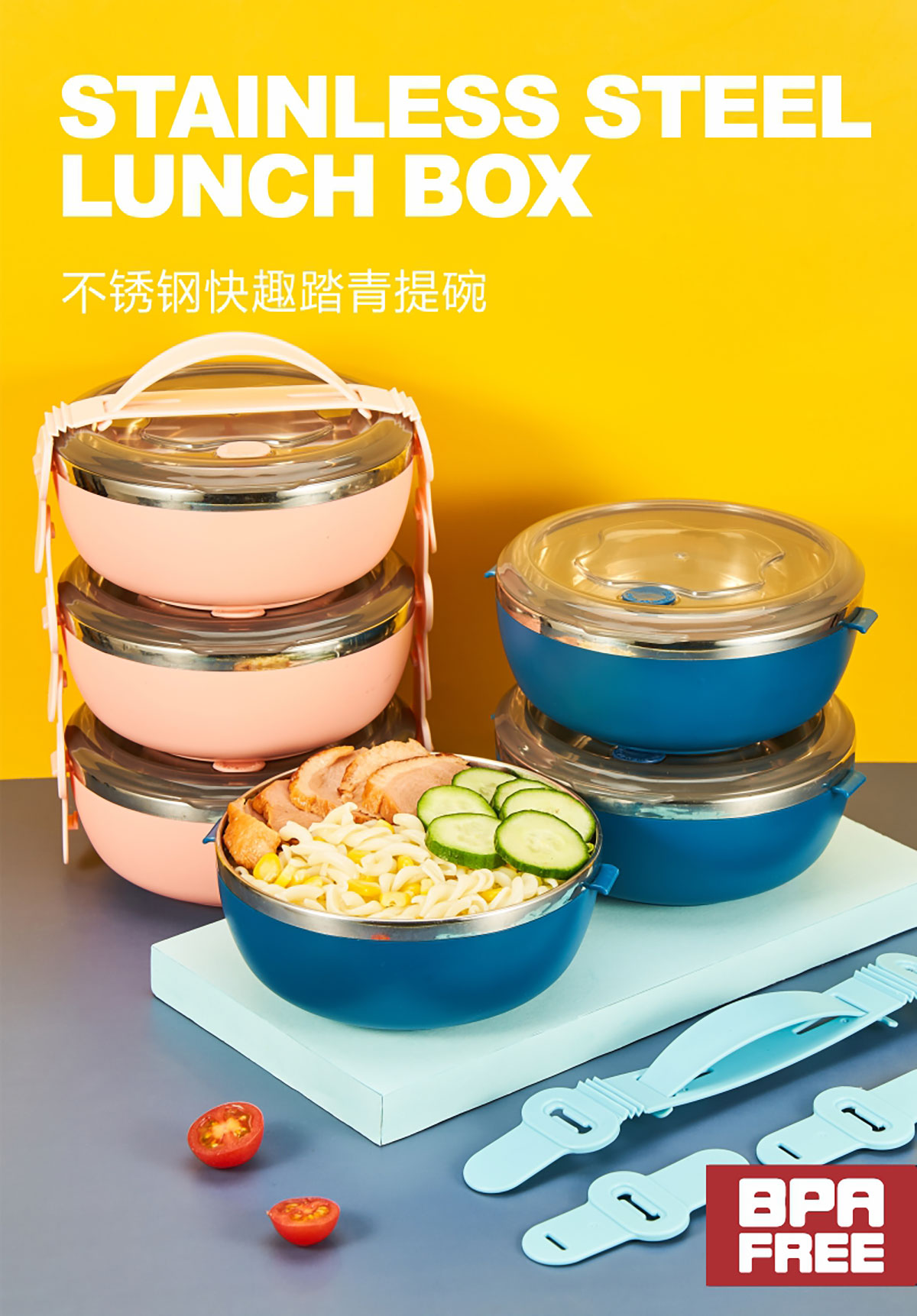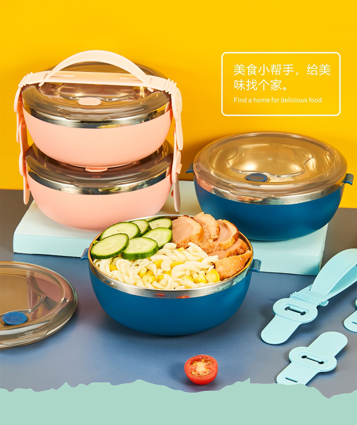 不銹鋼快趣踏青提碗雙層1.2L/三層1.8L