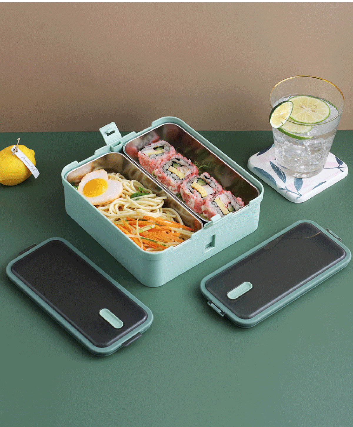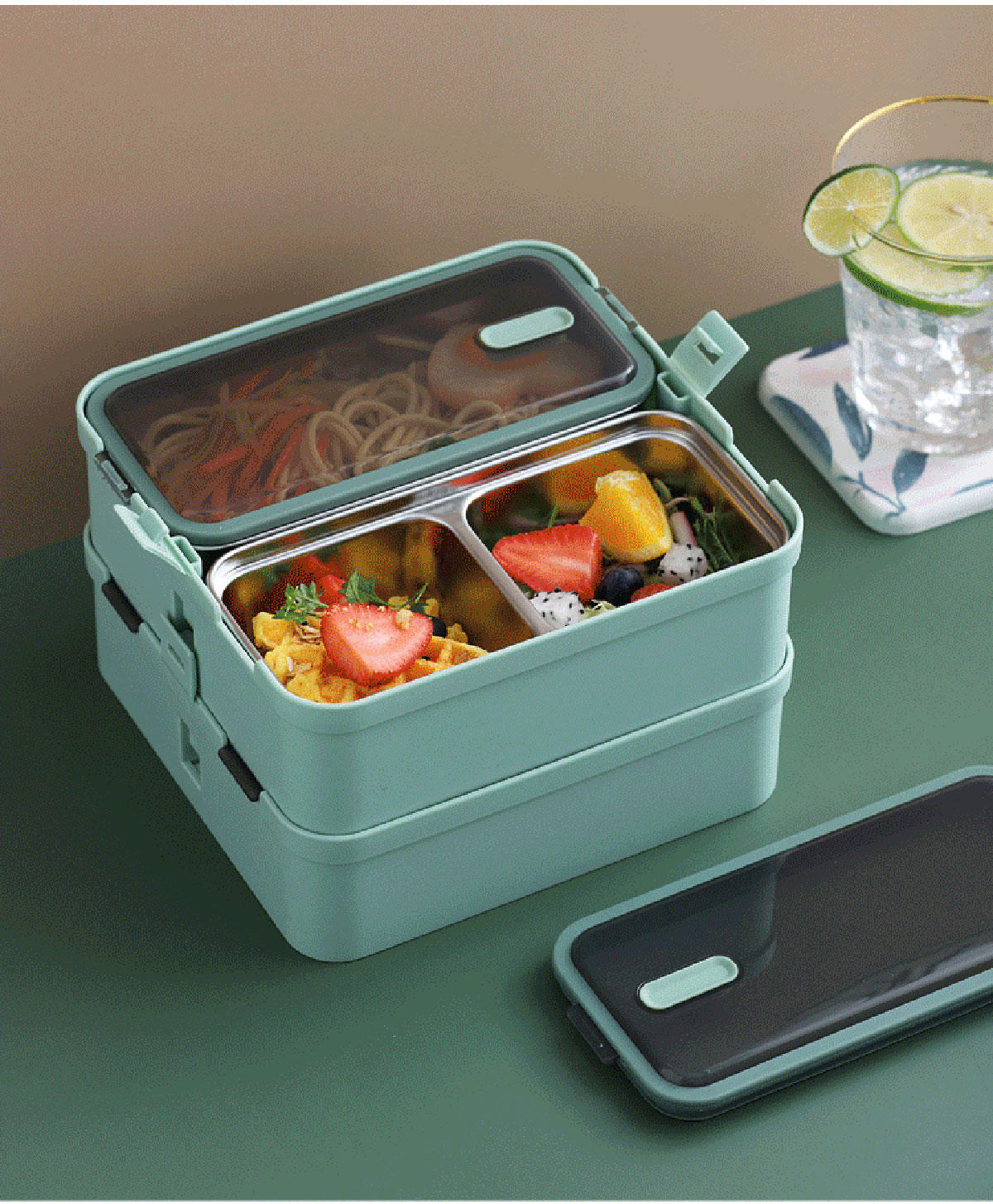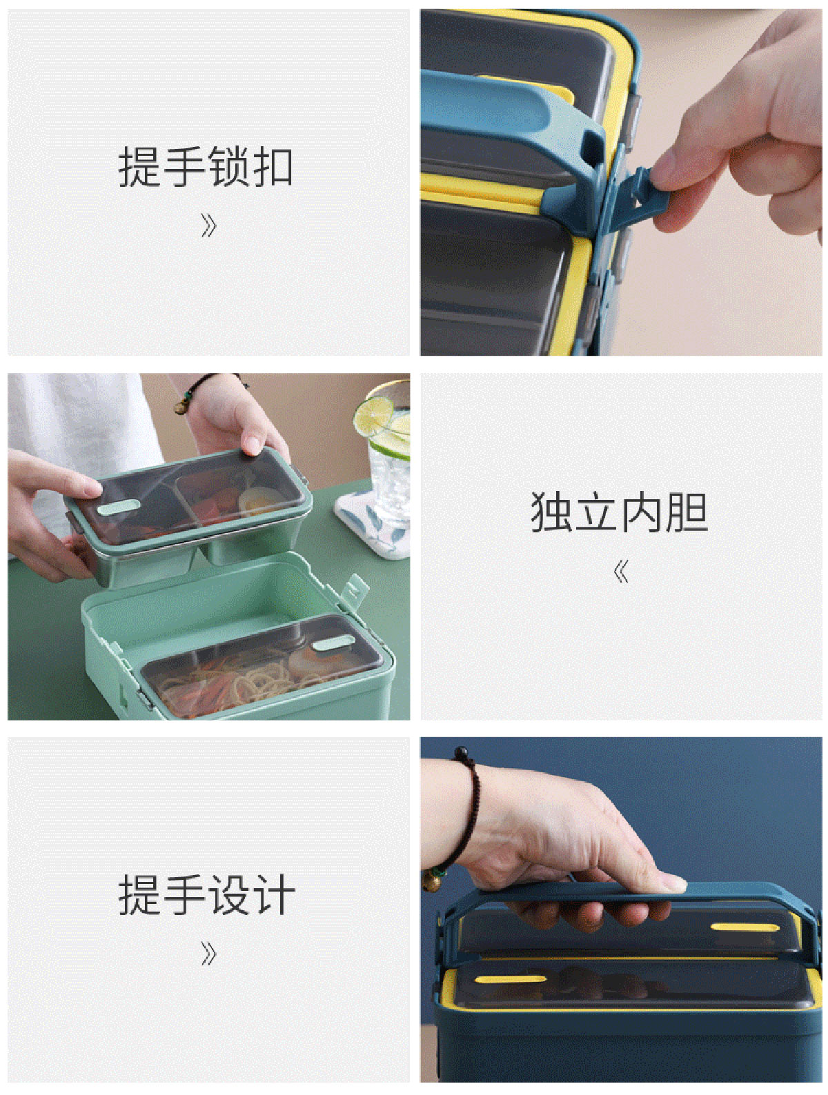 提手單層雙格不銹鋼飯盒1100ml