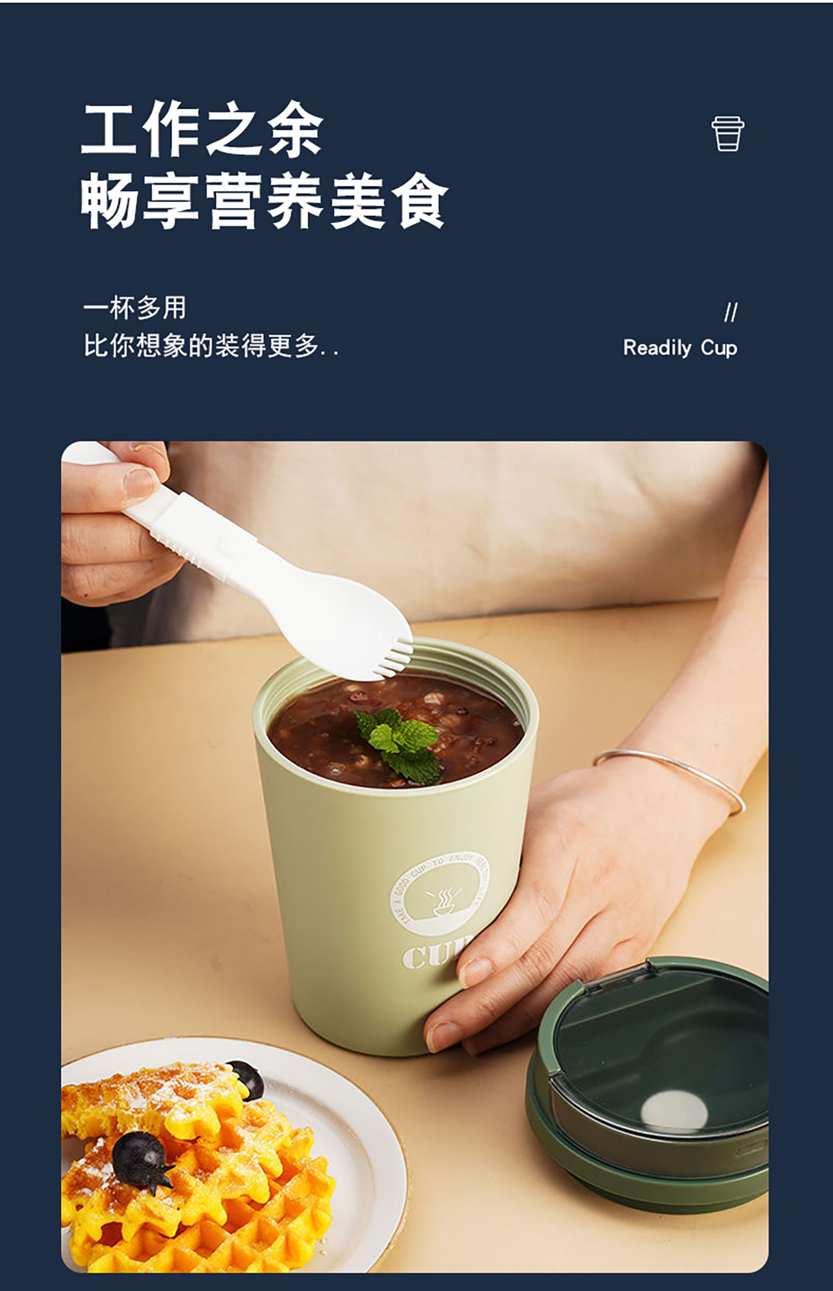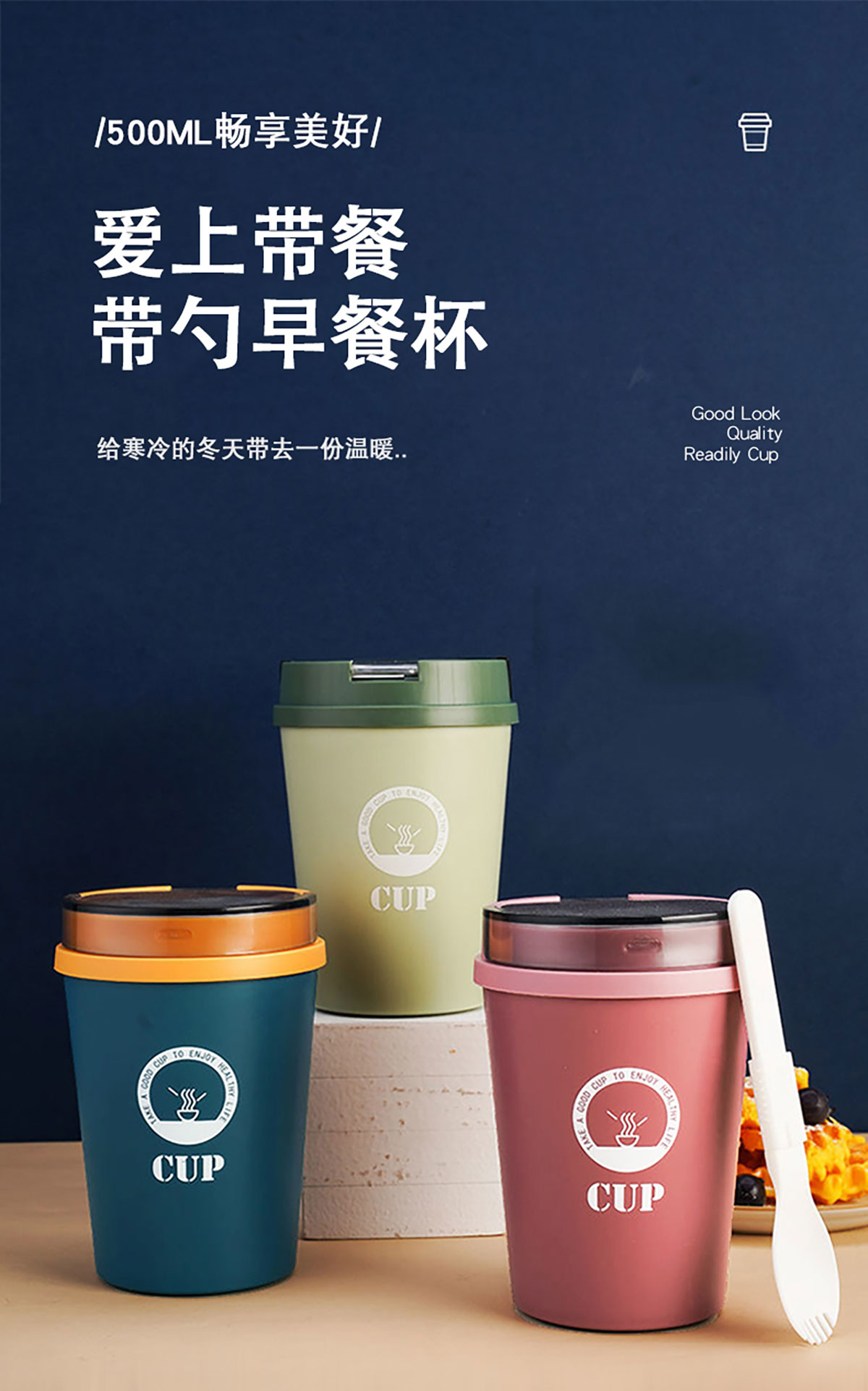 莫蘭迪帶勺早餐杯500ml