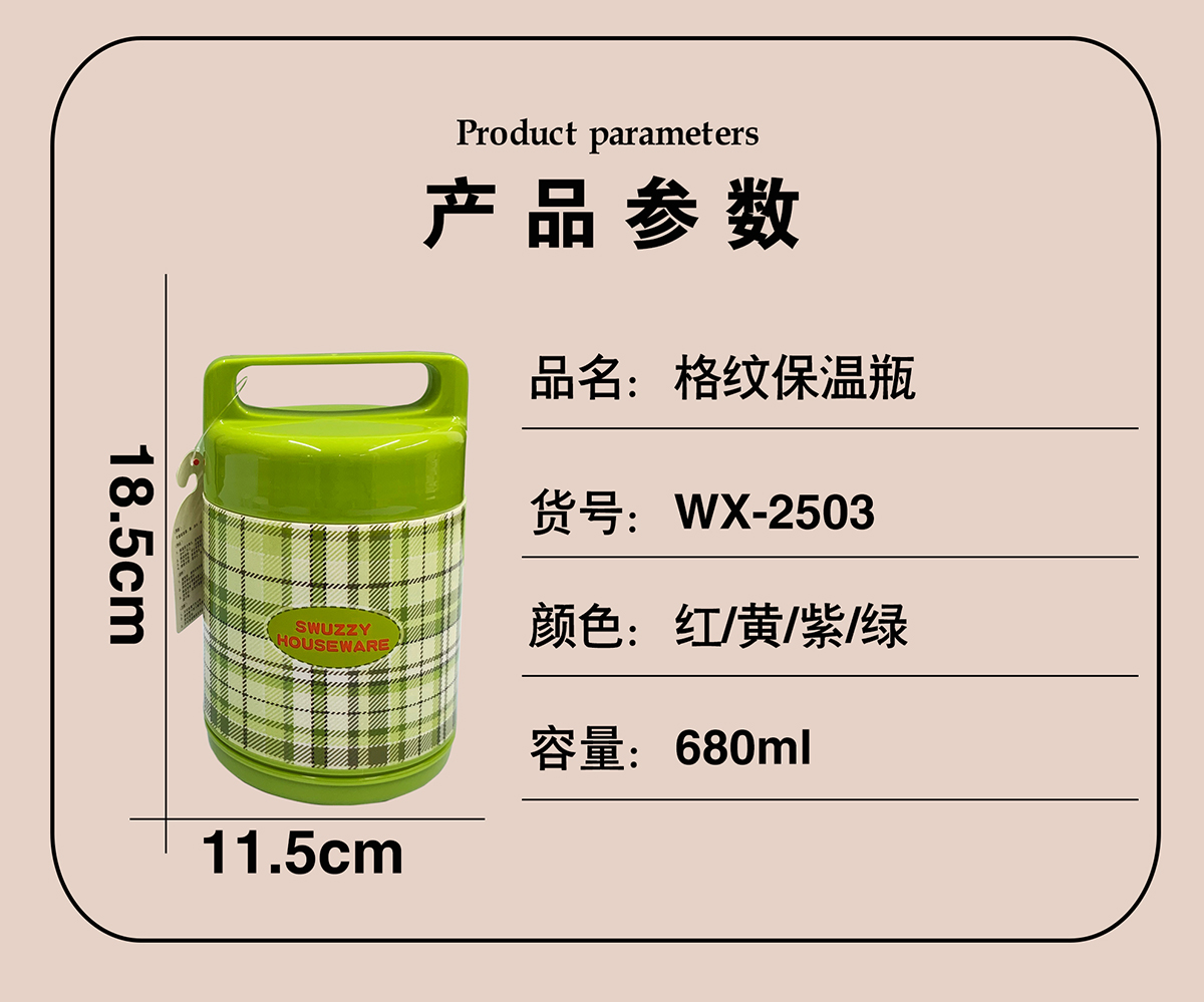 保溫瓶(全鋼內膽)格紋680ml
