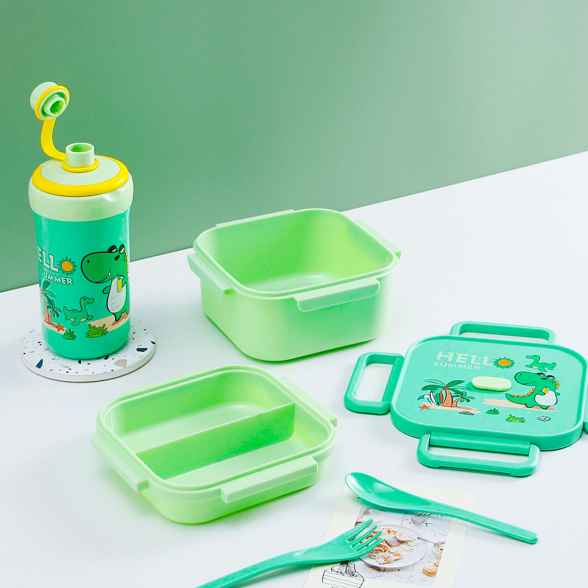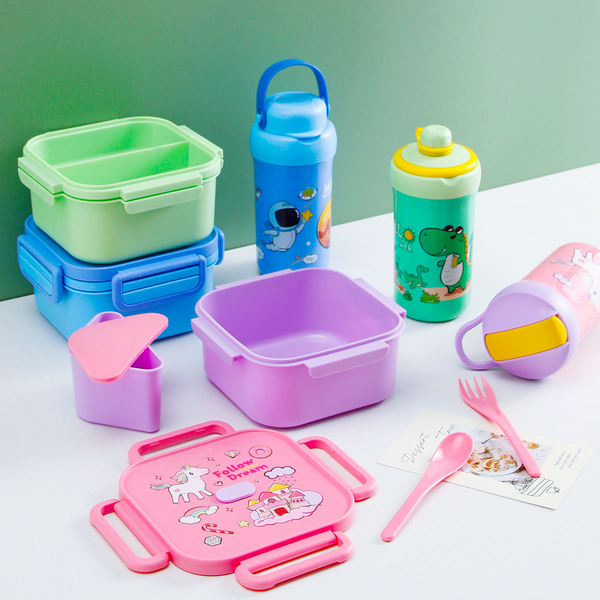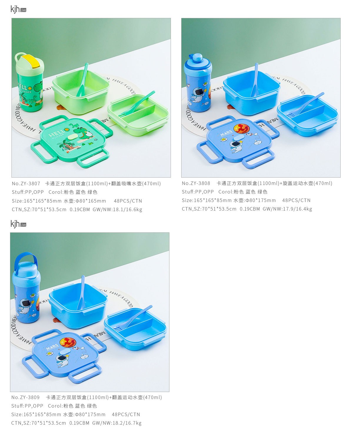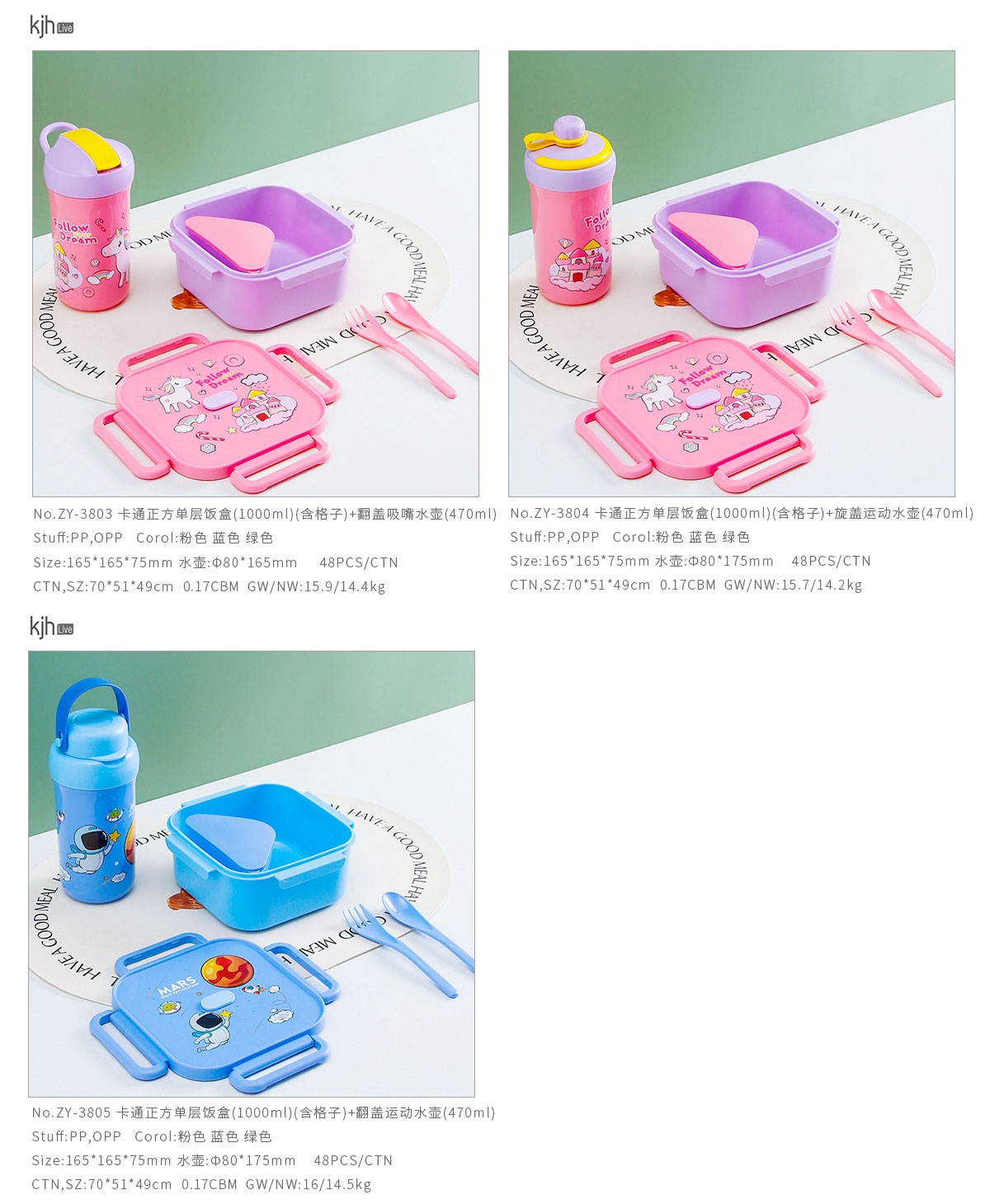卡通正方單層(含格子)/雙層飯盒+翻蓋吸嘴/旋蓋運動/翻蓋運動水壺