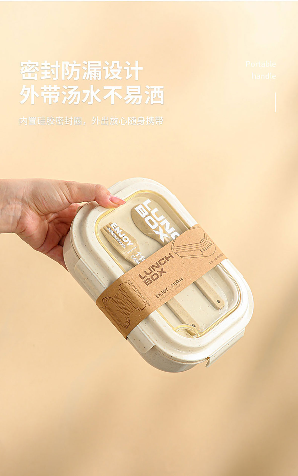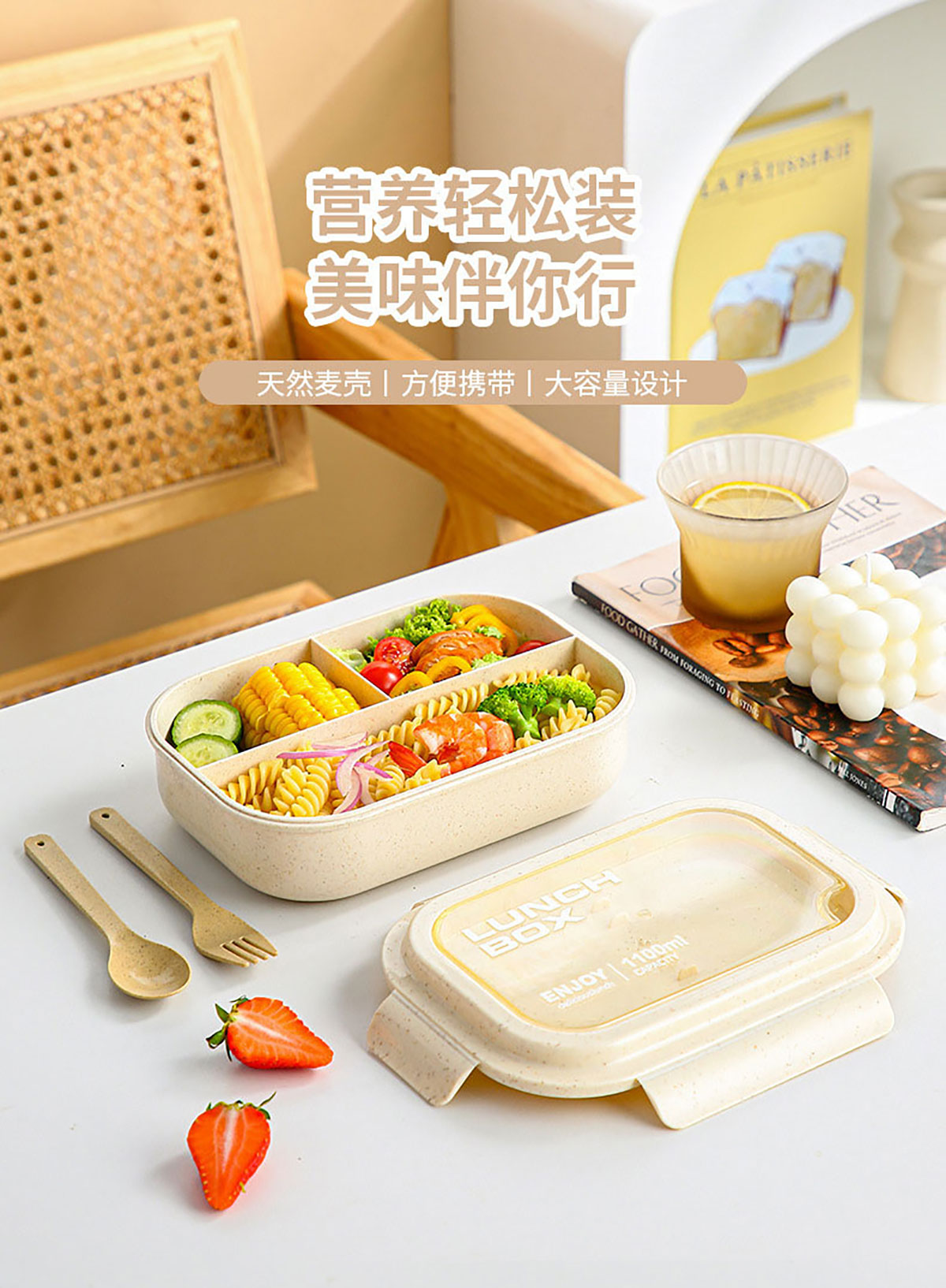 麥秸桿分格便當(dāng)盒(配叉+勺)1100ml
