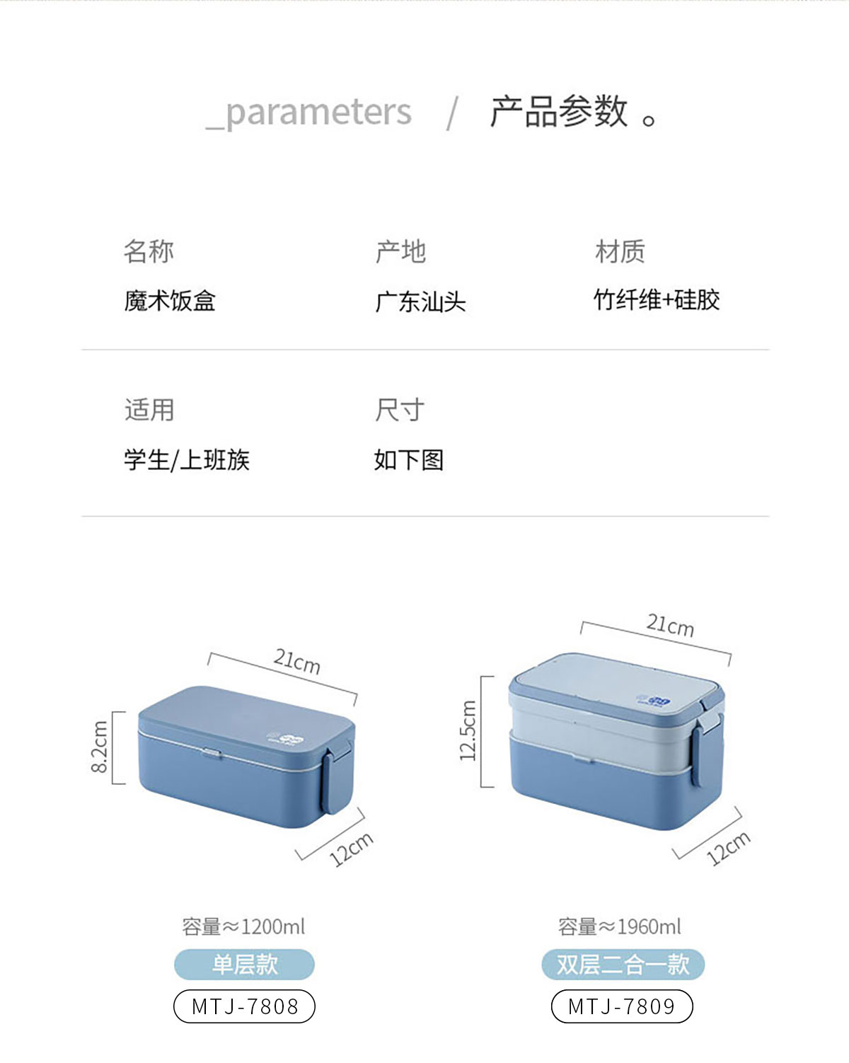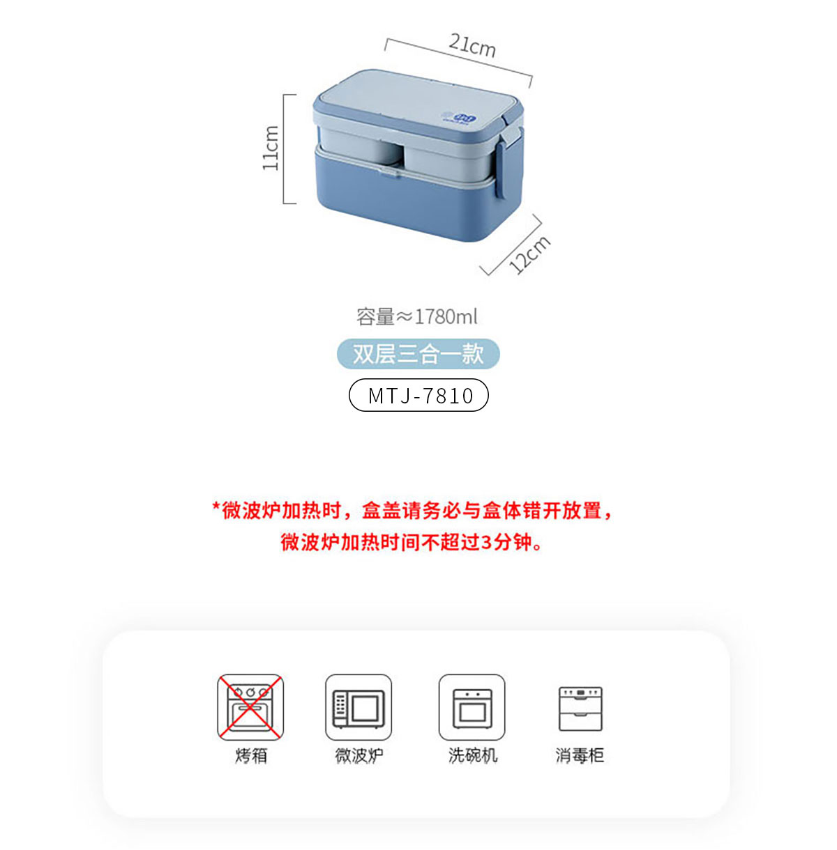 Size: MTJ-7808(單層):210*120*82mm/1200ml