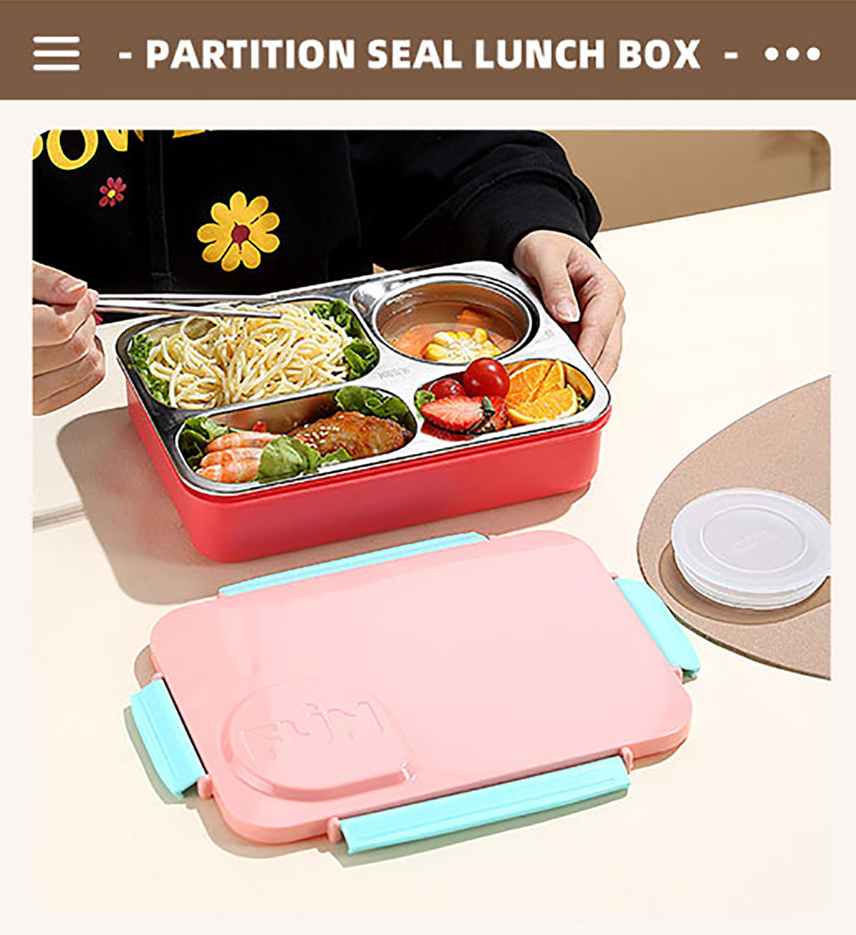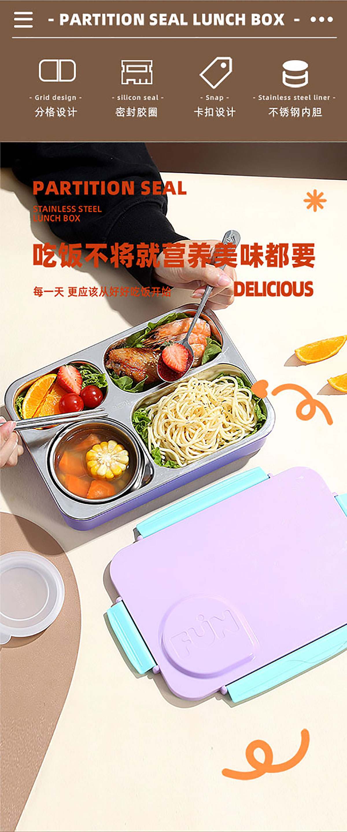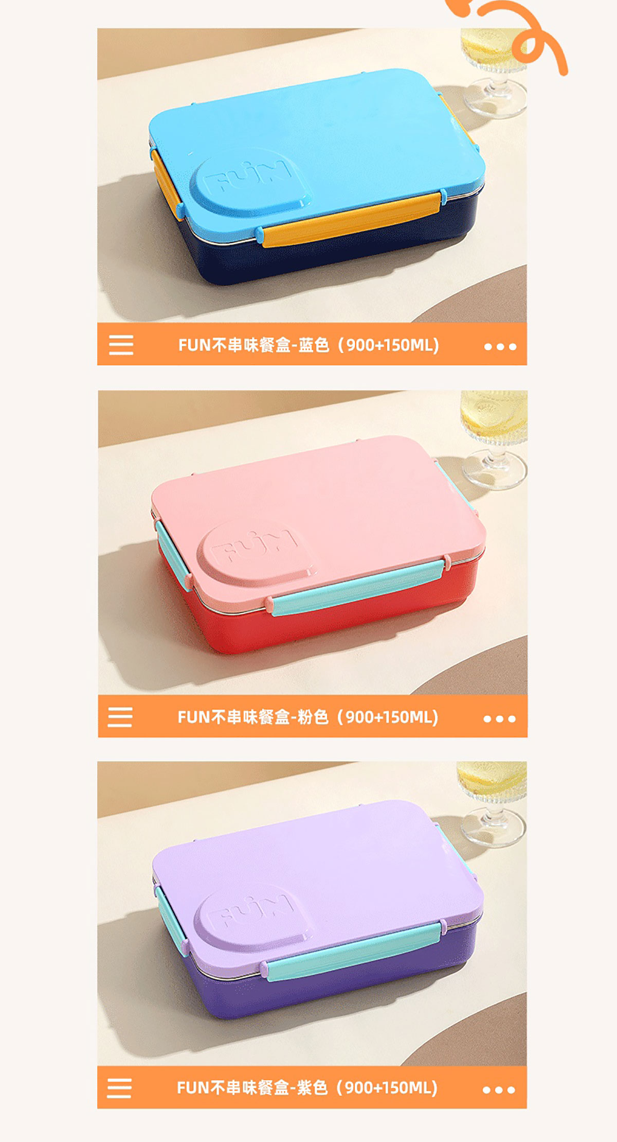 FUN不串味餐盒(不銹鋼4格900ml+塑料碗/不銹鋼碗150ml+不銹鋼勺筷)