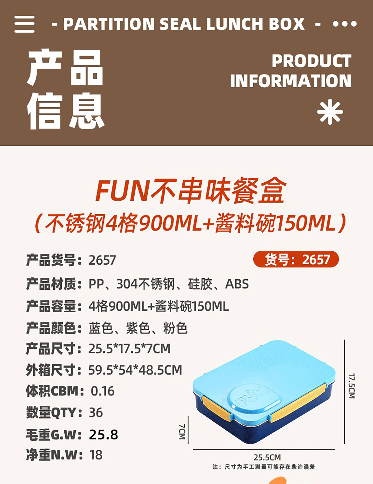 Size: AQX-2657:255*175*70mm+塑料碗150ml