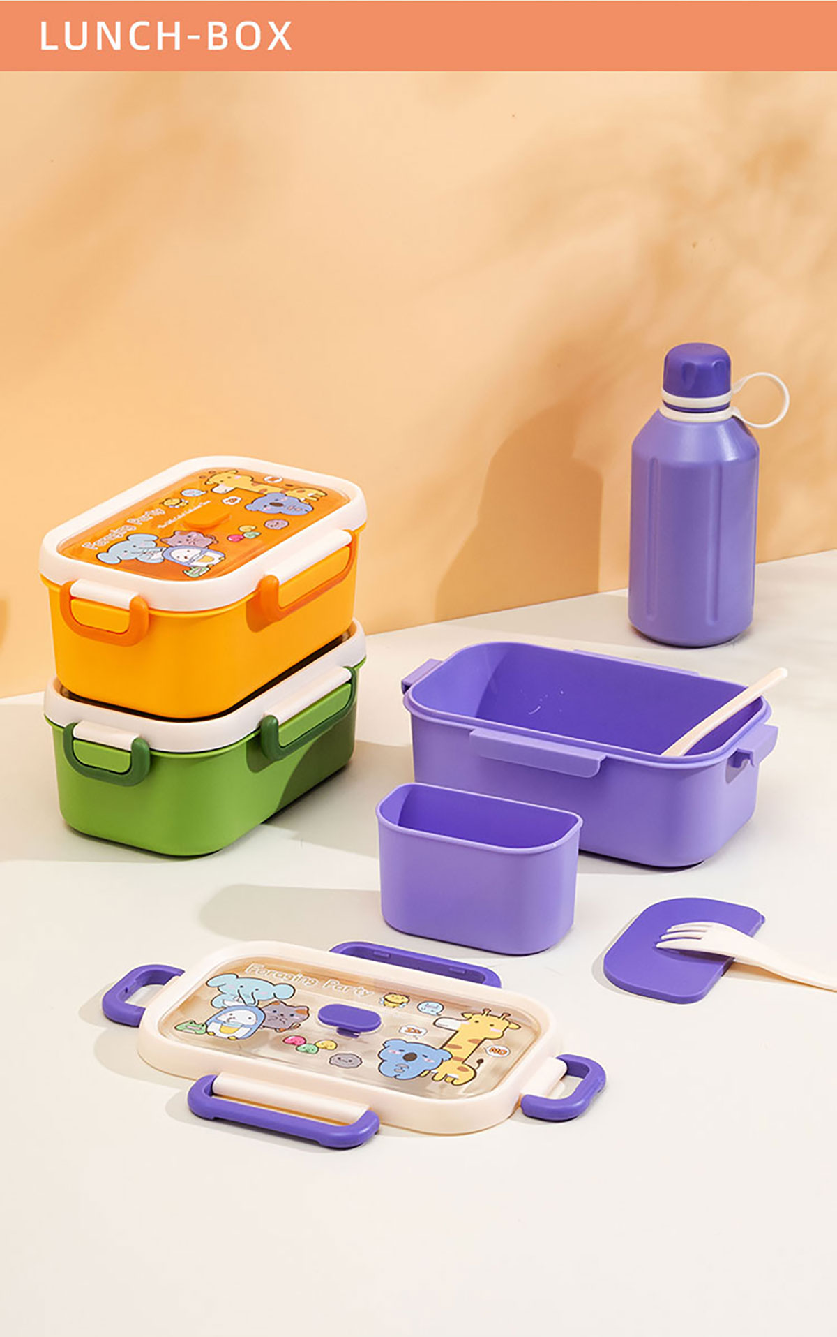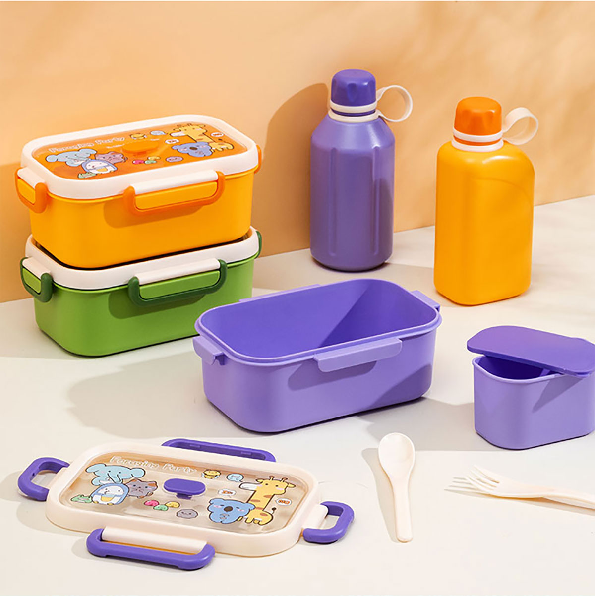 尚趣長方單層飯盒(1000ml)(含格子)/+圓形/方形運(yùn)動水壺(500ml)