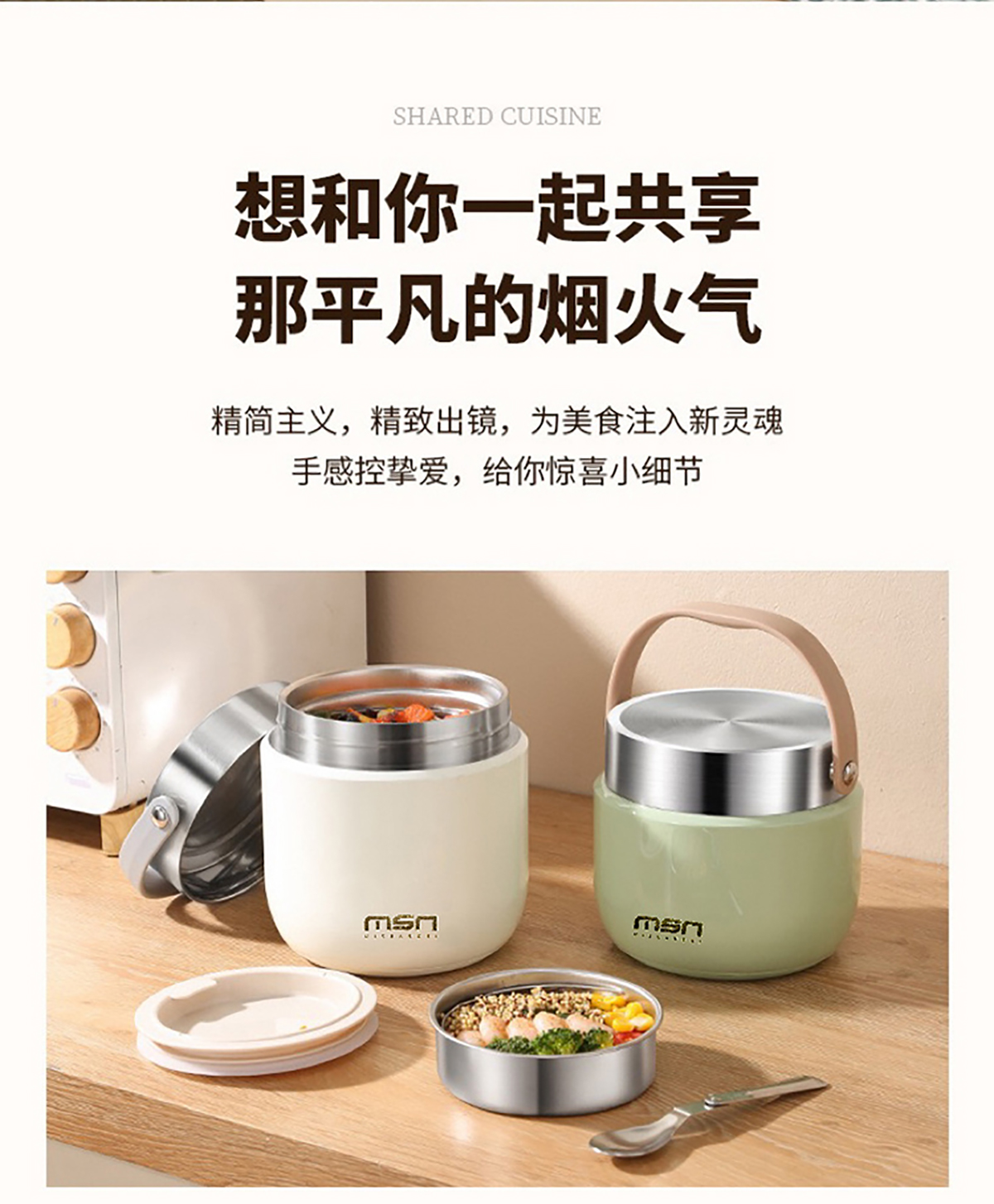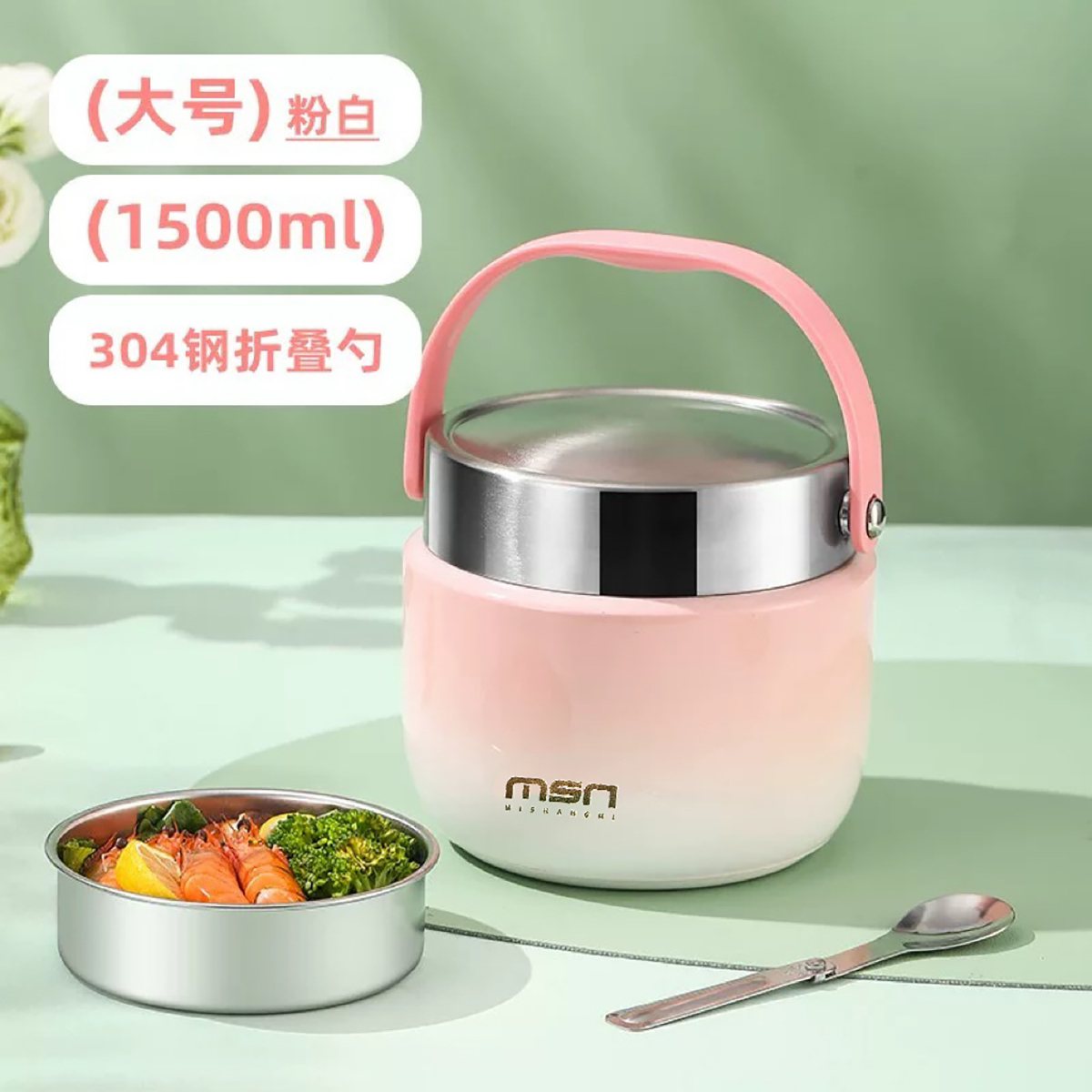 1.2L/1.5L304真空防溢雙層飯盒 本色/漸變